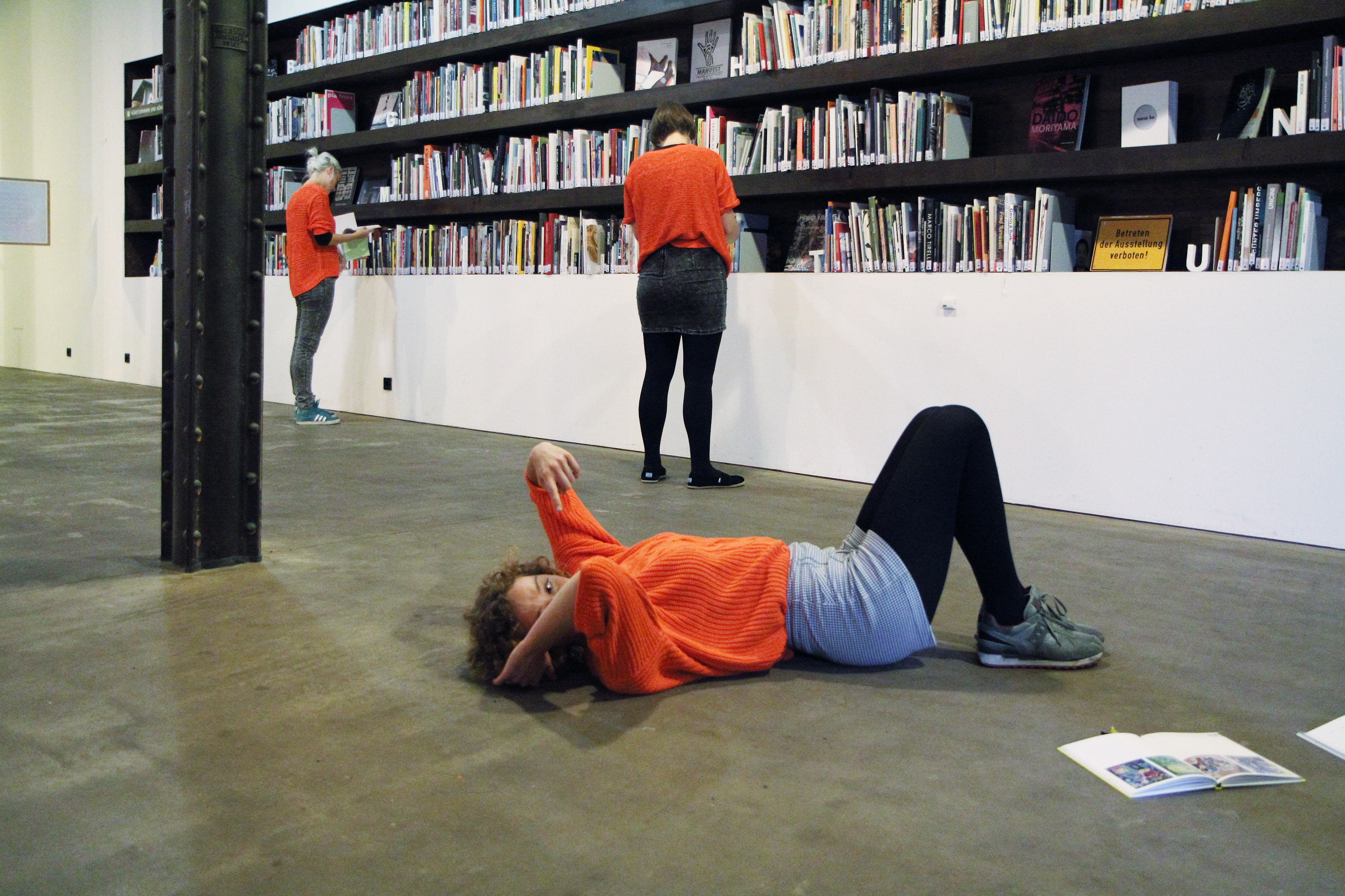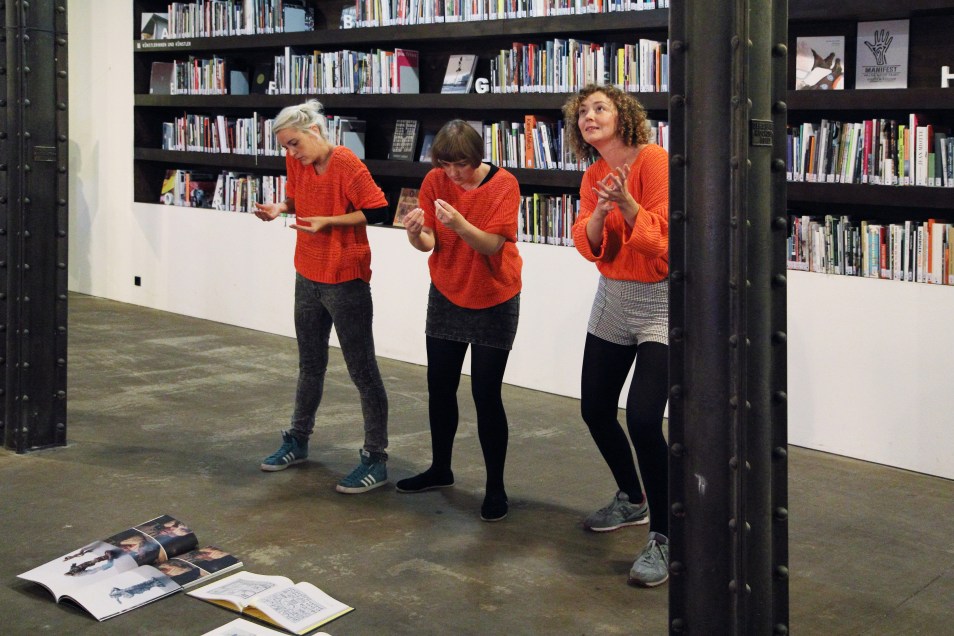 Standbild (still, statue, freeze frame) Residency at Halle 14 and exhibition during Rundgang festival, Leipzig. 2014 Courtesy of Halle 14 Kunstbibliothek. Photos: Ulrike von Dewitz